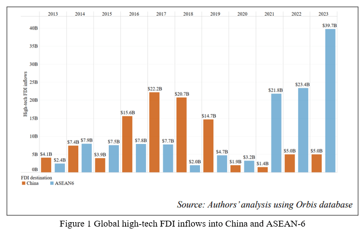 Also signaling deeper integration, from 2021-2023, China has funneled large investments in high-tech manufacturing facilities in the ASEAN-6, specifically in Vietnam and Malaysia. While gainful in the short-term, high reliance on Chinese investment imperils ASEAN-6’s long-term economic resilience, affecting its capacity to handle global shocks.